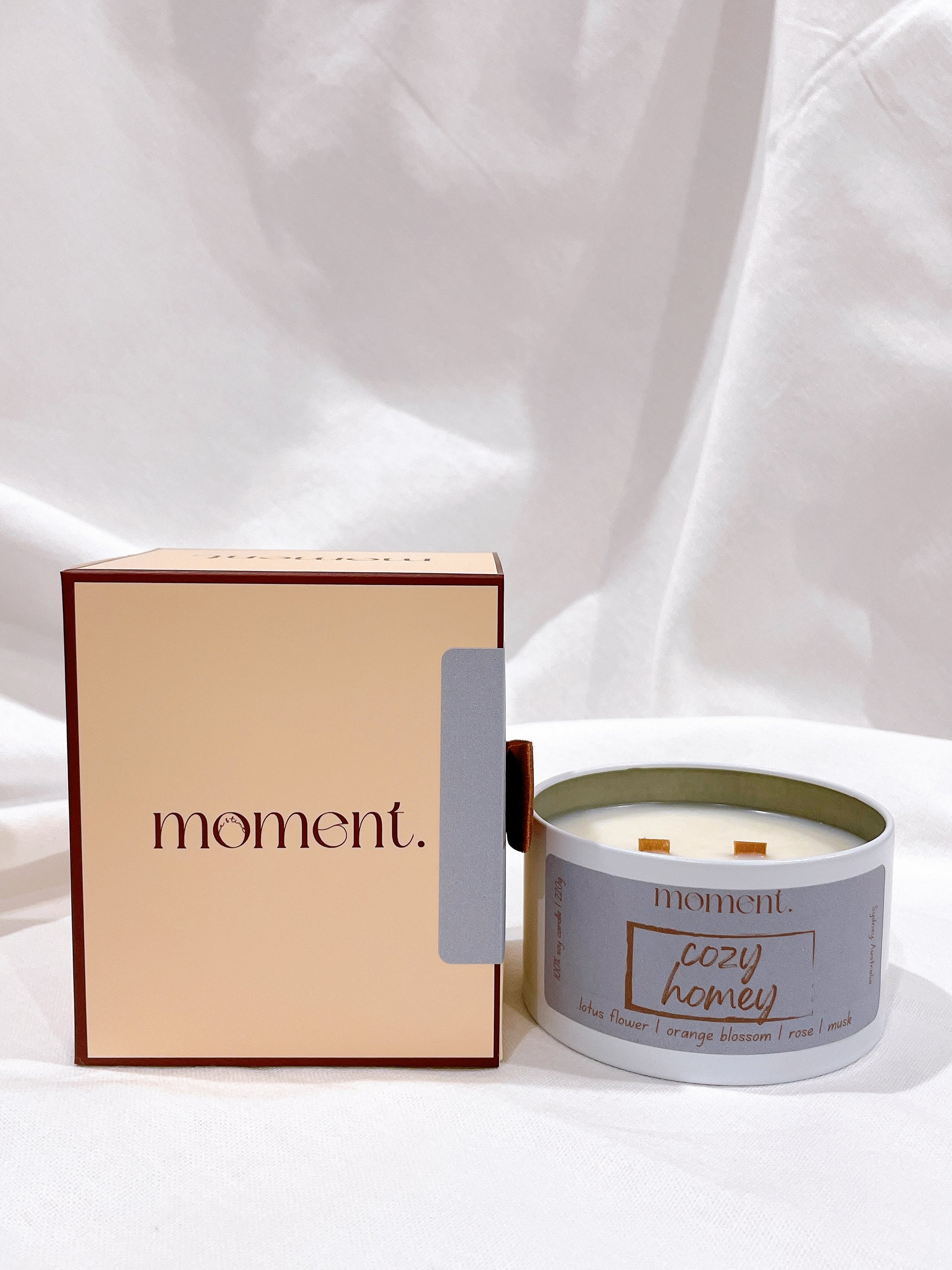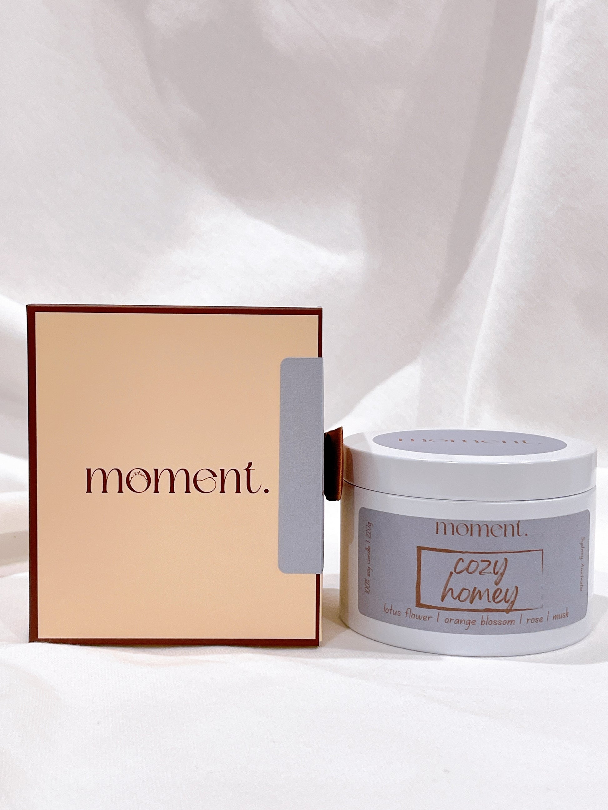 Introducing "Cozy Homey" Candle: Experience the tranquil blend of Lotus Flower, Orange Blossom, Rose, and Musk in the Winter Season