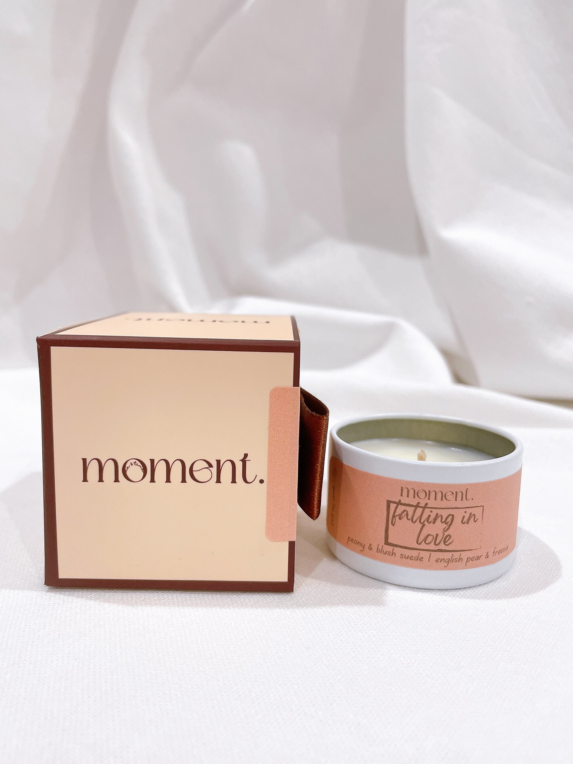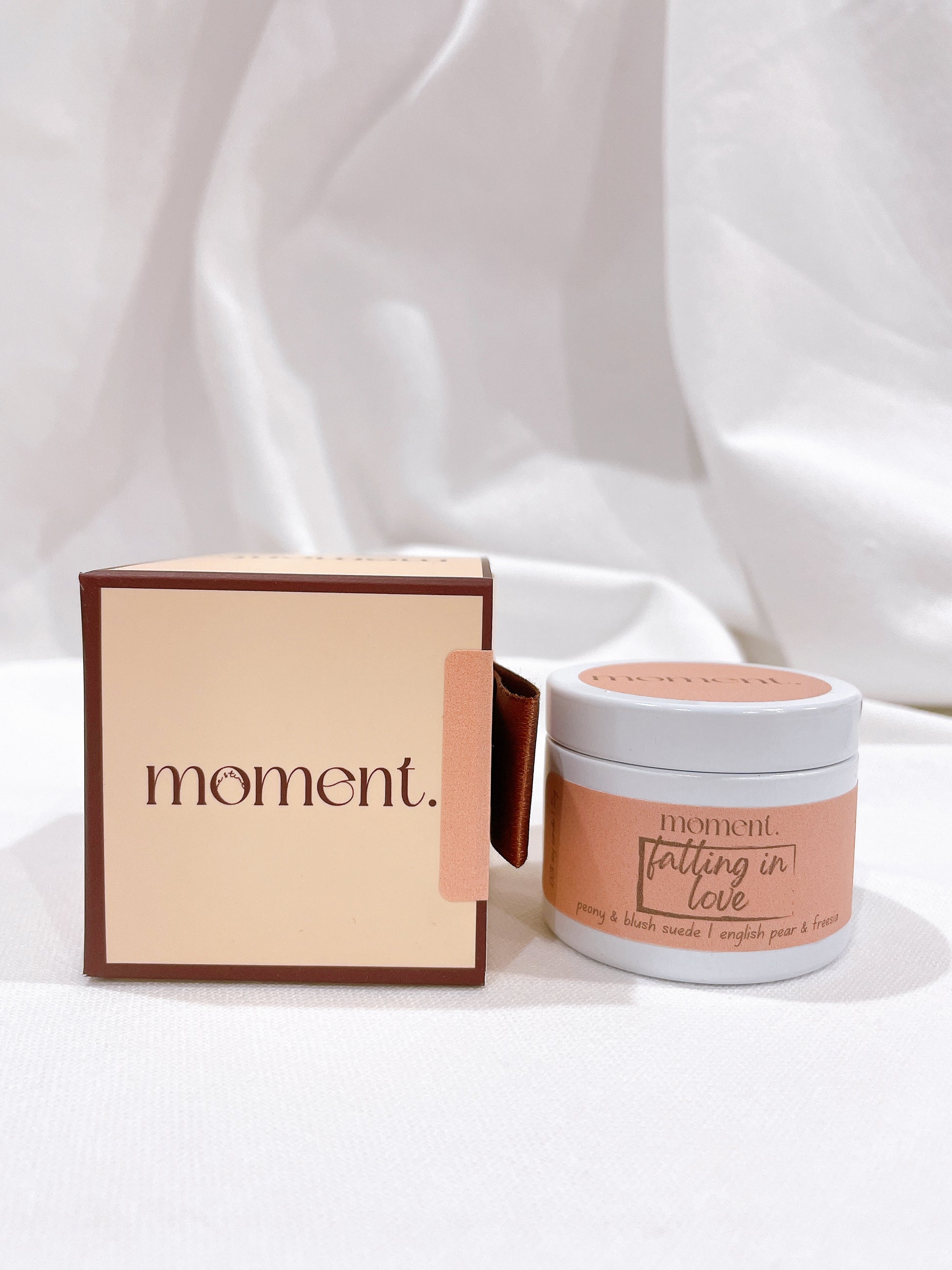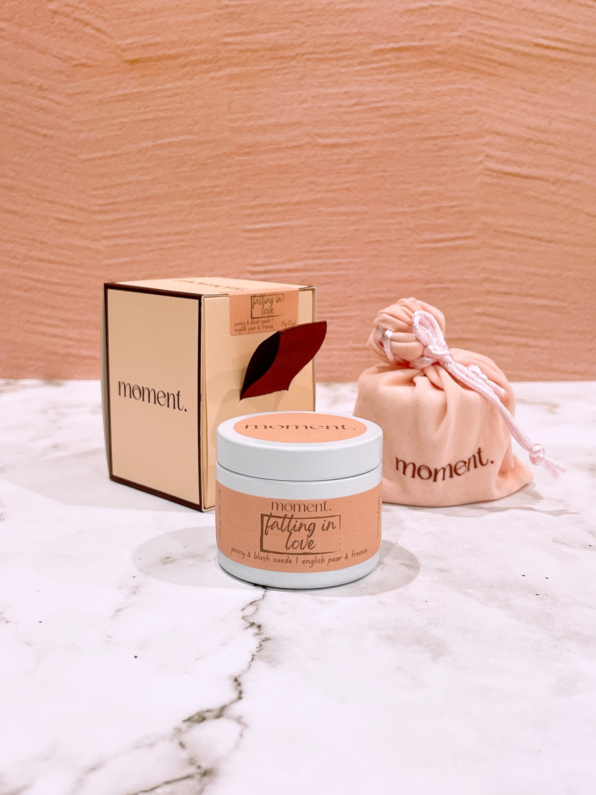 Introducing "Falling in Love" candle, a captivating blend of Peony and Blush Suede intertwined with the delicate aroma of English pear and Freesia.