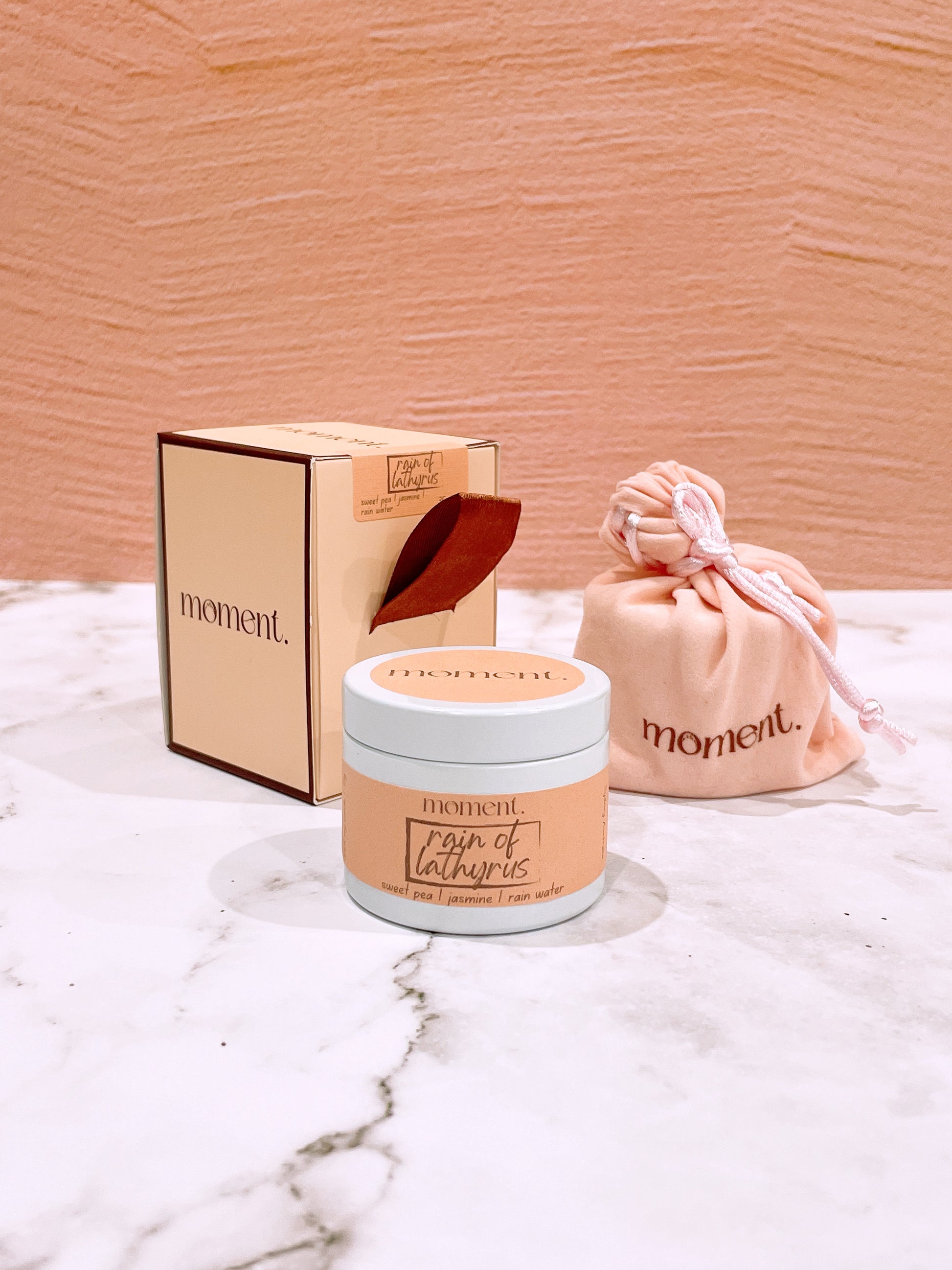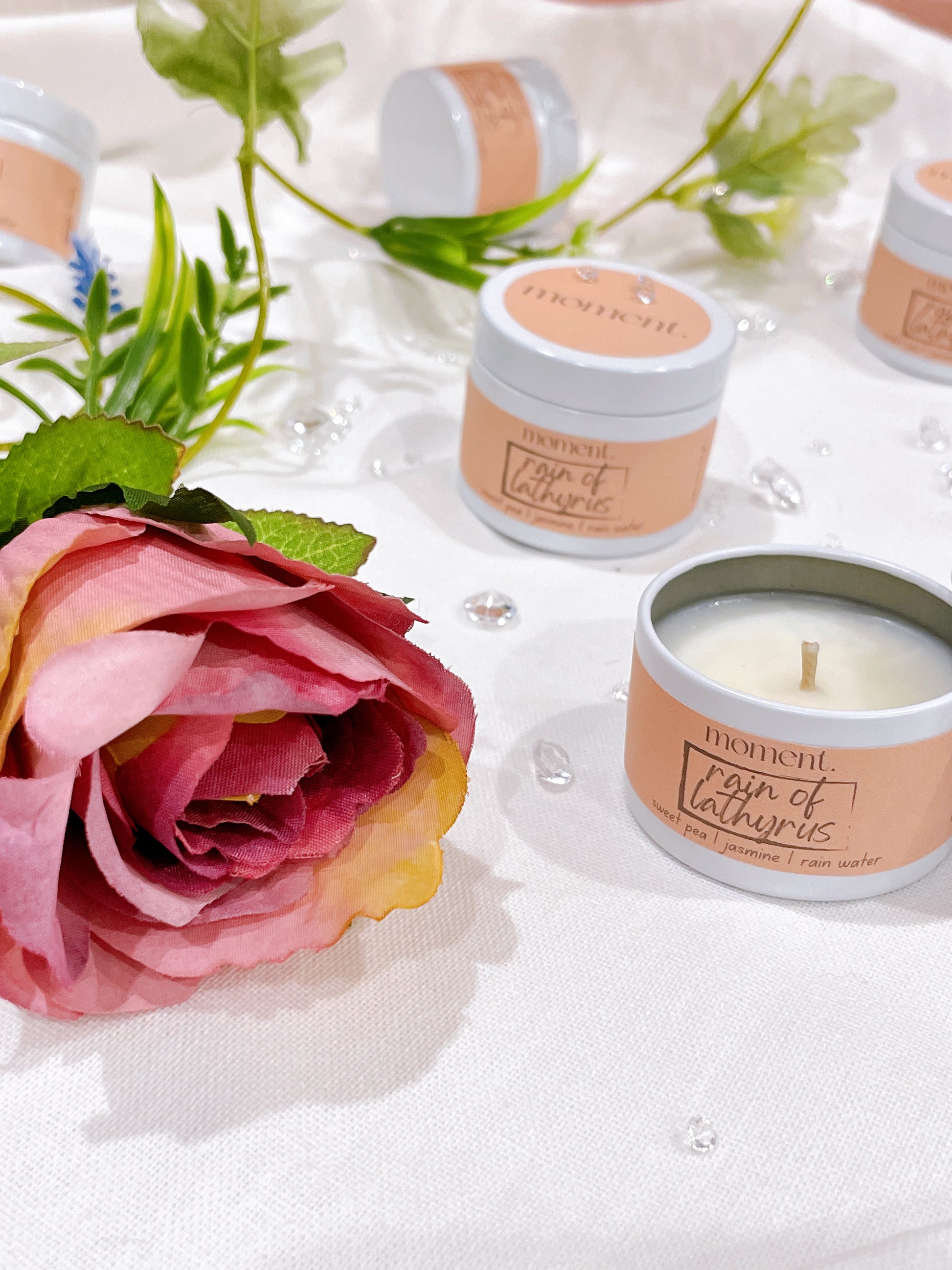 Introducing "Rain of Lathyrus" candle Experience the Fragrant Symphony of Sweet Pea, Jasmine, and Rain Water.